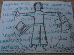 Being part of an art therapy group can give young people a chance to discover and share similar experiences like life feeling out of control at times, having to repeat things over and over again, like hospital visits, injections and so on which can become boring and frustrating at times. Being in pain and feeling or looking different can sometimes lead to getting too much unwanted attention. Conversely not ‘looking ill’ on the outside can mean young people are not believed.